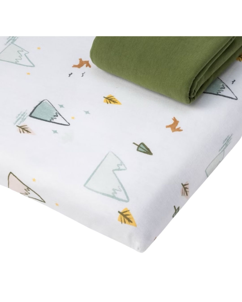 Add a sweet flair to your little one’s nursery decor with these 2 pack ‘ Forest’ play yard sheets!