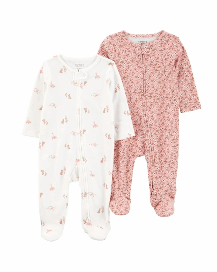 Carter’s Baby Girl 2 Pack Sleepers – Pink Flower – New Born