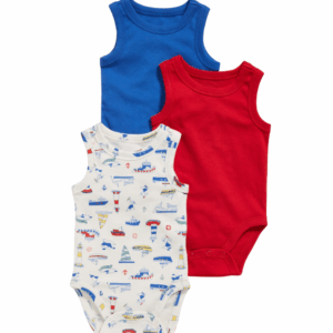 Old Navy’s 3 Pack Baby Boy Onesies – Blue, Red, White – 3-6M & 6-12M