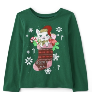 Baby Girl Christmas Shirt ‘Green Stocking’ – 12-18M & 18-24M